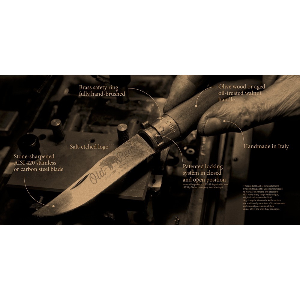 100mm Stainless Steel Blade, Walnut Handle, Brass Bolster, Patented Locking System, Made in Italy, Authorised Aust. Retailer