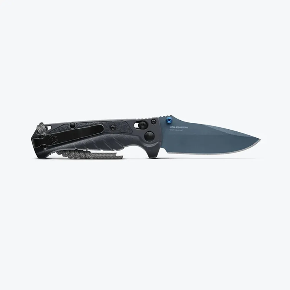 Benchmade's hard-use, aquatic EDC known as the “angler's favorite folder” just got a refresh. Meet the 18065BT-01 Mini Adira™, a stealthier variant of the original, built for tasks on deck and off. Donning an understated tempest gray Grivory handle paired with a pop of sapphire blue PVD on the thumbstud, the 18065BT-01 Mini Adira™ sports a nimble 81.5mm drop point blade of CPM-MagnaCut stainless steel, now with an updated Cerakote blue titanium blade finish. Includes a charcoal gray paracord lanyard with black nylon bead for a faster draw from your pocket. Built with the same corrosion resistant AXIS lock mechanism with stainless steel springs as the original, the new 18065BT-01 Mini Adira™ might be the coolest looking tool on the boat.