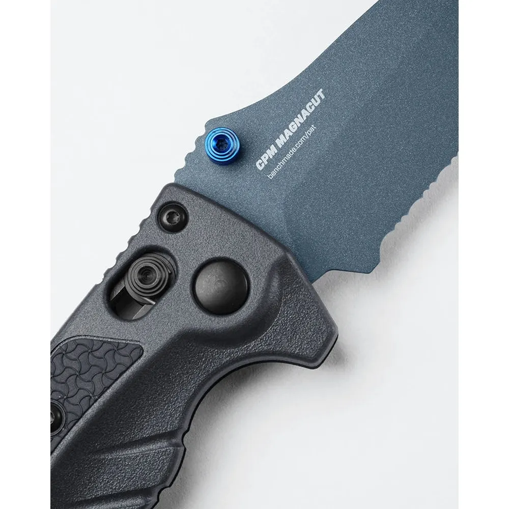 Part Serrated 81mm MagnaCut Blade with Blue Titanium Cerakote Finish, Tempest Gray Grivory, AXIS Lock, Made in USA, Authorised Australian Retailer