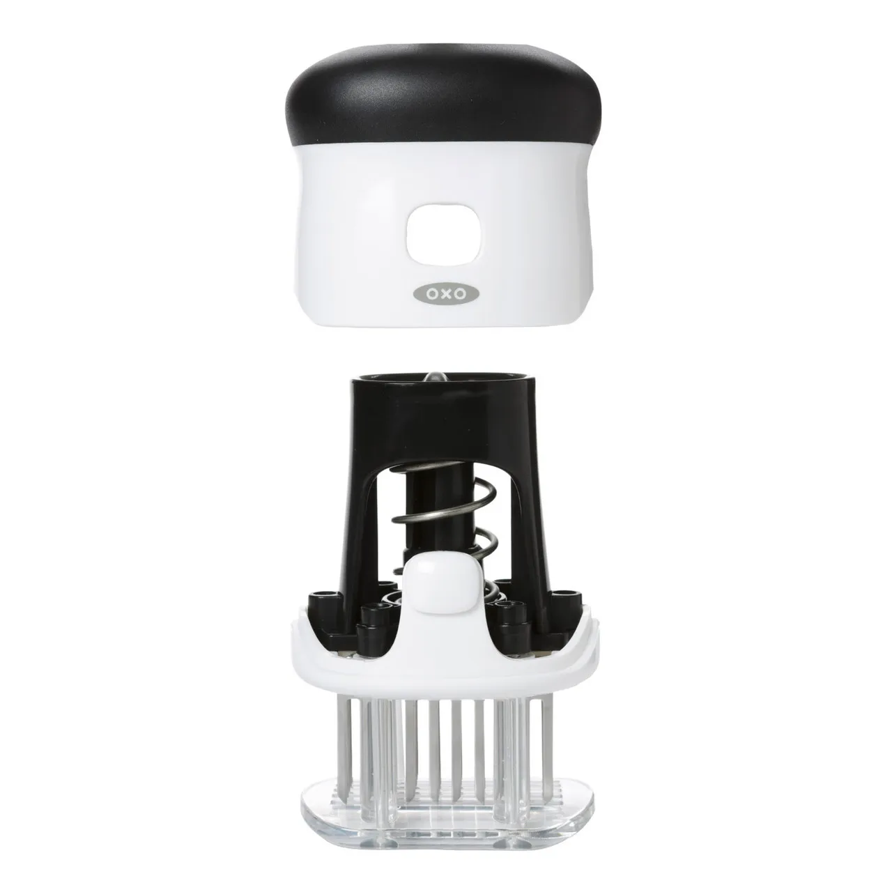 With 5 sharp blades, not only does the Bladed Meat Tenderizer make meat more succulently soft, it also creates pockets for meat to quickly absorb marinades and retain its own juices, promoting uniform cooking. The clear base makes it easy to see the indent left in the meat for even tenderization and the contoured shape is comfortable to hold. Safely locks with blades covered; comes apart for easy cleaning.
