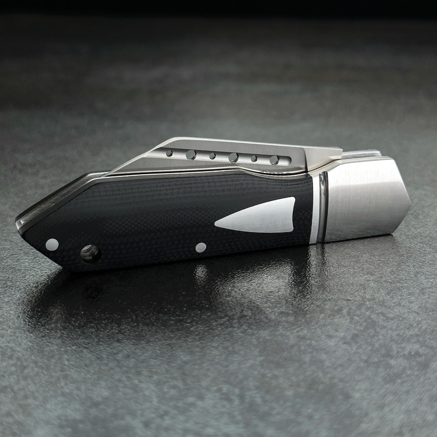 The Jared Van Otterloo-designed Large Bullet Train Slipjoint Knife is a refined pocket companion that channels a sophisticated elegance from a time long past. Boasting a comfortable, hand-filling profile unlike most traditional folders, it exemplifies JVO's keen design sensibilities and intrinsic style while inviting hard use. The angular reverse tanto blade measures just under three inches and features the Begg signature fluting which ensures effortless deployment and a reassuring half-stop safety. This length adheres to the regulations in various localities for both locking and non-locking blades.