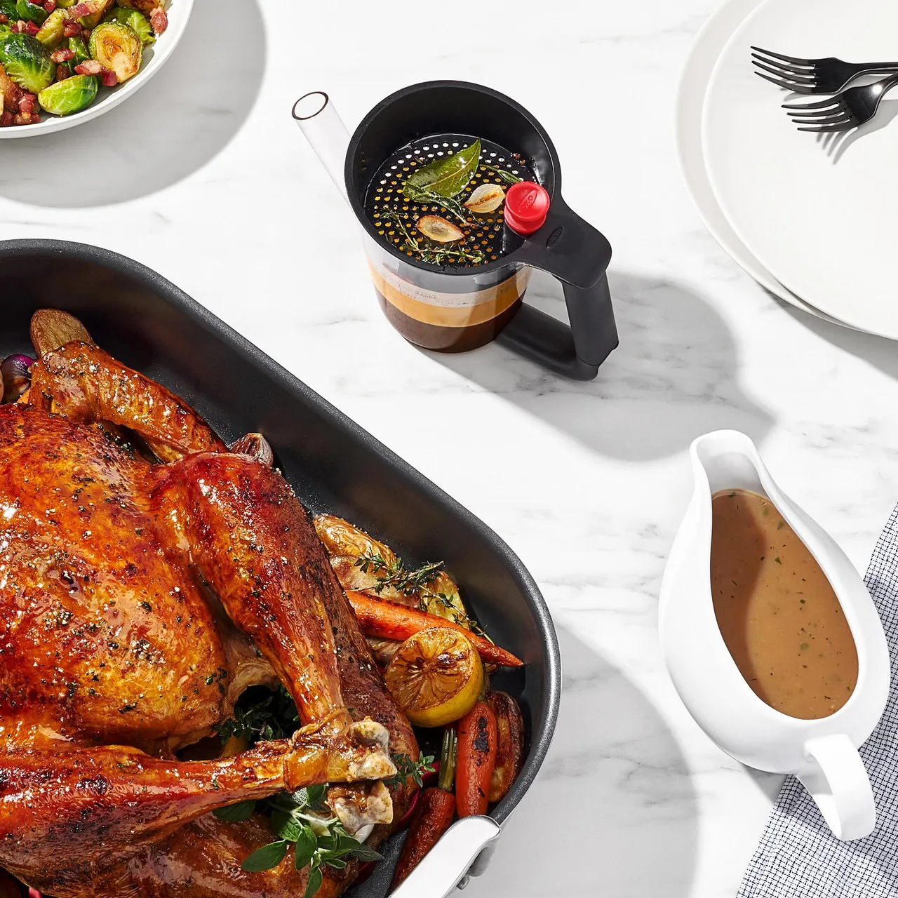 Making gravy has never been easier with the OXO Good Grips Fat Separator. Simply place the stopper in the spout and when you pour pan drippings into the fat separator, the strainer will separate unwanted bits and the fat will rise to the top. Remove the stopper and pour, and the flavorful cooking liquid will come out first, allowing you to leave the fat behind. The measurement markings make following recipes simple, and the splatter shield helps prevent splashing while you pour. When you’re done, this Separator is dishwasher safe, and there is a built-in storage spot in the strainer to keep the stopper, so it doesn’t get lost.