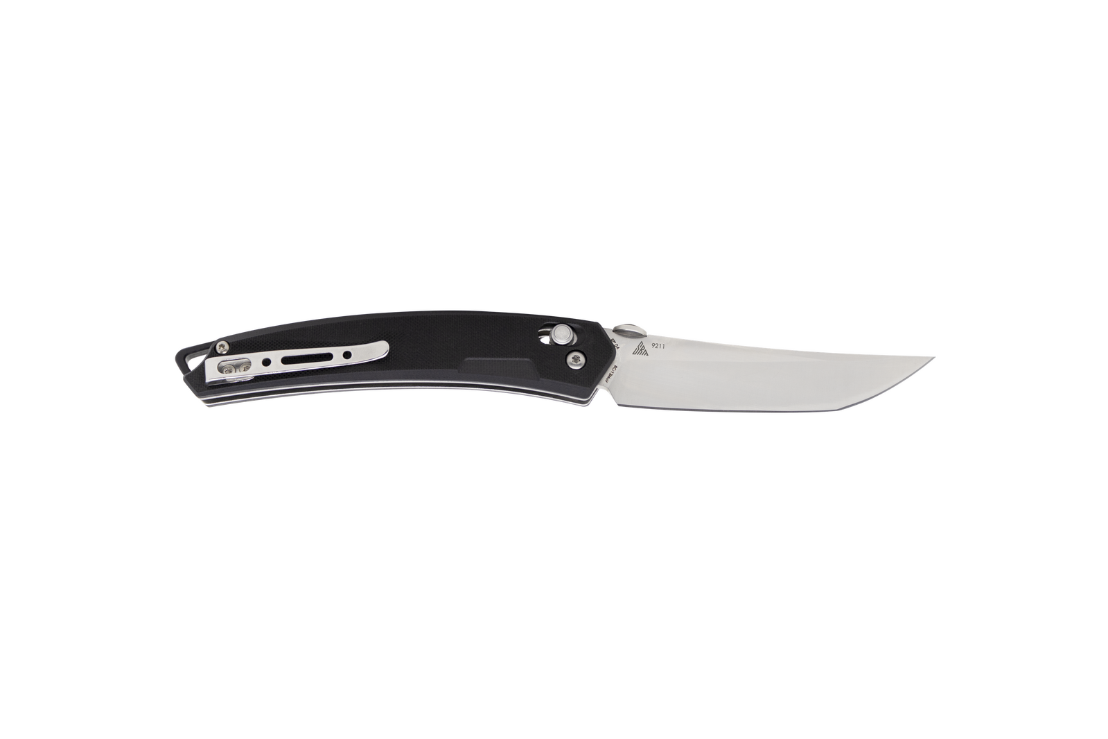 Ambi-lock plus thumb disc make 9211 more easy to play or use. Folded into compact handle featuring a pocket clip, 9211 is easy to carry as well. When fully deployed, the blade tip is good for piercing and its long belly fits for slicing and cutting. Covering the stainless steel liner of handle, a pair of textured G10 scales helps users keep a firm grip.